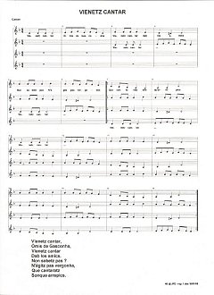 Vienetz cantar Paroles de JP Dartiguelongue, sur une musique retrouvée dans ses archives familiales